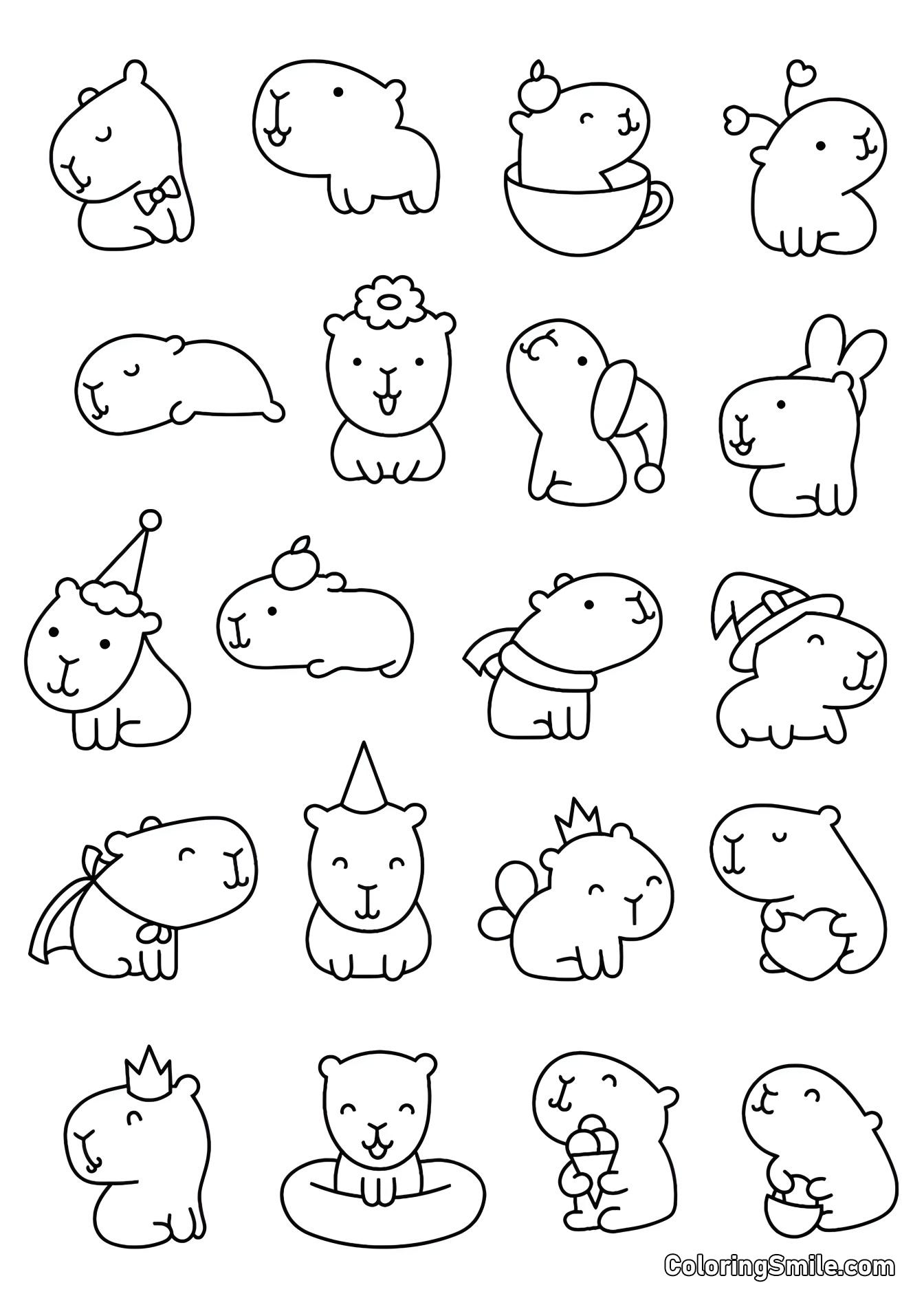 Le capybara est un symbole de paix et d’harmonie, et maintenant vous pouvez entrer dans son monde avec nos délicieuses pages de coloriage ! Imprimez et coloriez ces adorables rongeurs par vous-même, avec des amis, ou aux côtés d’autres designs d’animaux amusants. Parfait pour les enfants et les adultes, ces pages offrent une manière relaxante de libérer votre créativité.